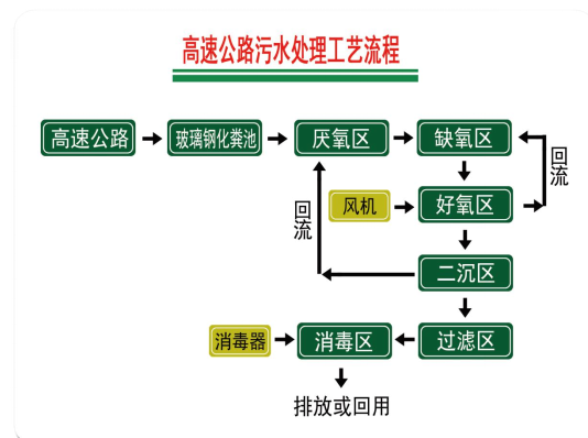 服務區(qū)污水具有其特有的特點:氨氮含量高,色度高,化學需氧量大,磷、重金屬、油污等污染物含量高,水質復雜、水量波動大。