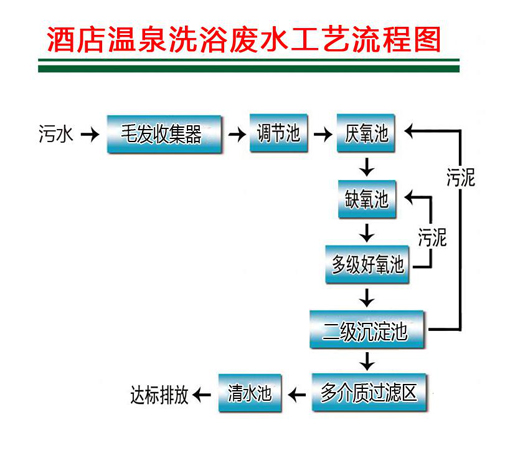 首先通過毛發(fā)收集器攔截,對污水進(jìn)行預(yù)處理,目的是初步降低無機(jī)顆粒物質(zhì)的含量,提高污水的同一性和可生化性;接著由提升泵定量提升至調(diào)節(jié)池進(jìn)行水質(zhì)水量的調(diào)節(jié),經(jīng)調(diào)節(jié)后的污水通過缺氧好氧A/O/O/O生物接觸氧化法,利用生物膜的作用使有機(jī)污染物首先轉(zhuǎn)化為氨氮,同時通過好氧硝化和缺氧反硝化過程既去除有機(jī)物又去除了氨氮。生化池配以新型的高密型彈性立體填料,該填料具有負(fù)荷高、施工簡易、體積小、運行穩(wěn)定可靠、管理方便、維修更換方便等優(yōu)點;生化池的出水進(jìn)入二沉淀池進(jìn)行固液分離,二沉淀池具有固液分離效果好、投資省、對沖擊負(fù)荷和溫度變化適應(yīng)能力強(qiáng)、施工簡易等特點;二沉淀池出水進(jìn)入多介質(zhì)過濾器除去水中雜質(zhì),經(jīng)多介質(zhì)過濾區(qū)處理后能確保污水經(jīng)處理后各項指標(biāo)全面達(dá)標(biāo)。