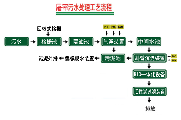 處理工藝選擇是根據(jù)污水量、污水水質(zhì)和環(huán)境容量,在考慮經(jīng)濟(jì)條件和管理水平的前提下,選用安全可靠、技術(shù)先進(jìn)、節(jié)能、運(yùn)行費(fèi)用低、投資省、占地少、操作管理方便的成熟處理工藝技術(shù)。本工程處理的污水為屠宰污水,結(jié)合本污水的特性故采用高效溶氣氣浮裝置+BIO智能技術(shù)膜處理工藝,該工藝針對(duì)該類污水工藝操作簡(jiǎn)單、占地面積小、運(yùn)行費(fèi)用低、處理效果好、運(yùn)行穩(wěn)定,是目前已經(jīng)在實(shí)際工程中取得成功應(yīng)用的工藝,能有效地保證出水達(dá)標(biāo)污水處理主單元采用優(yōu)質(zhì)的 Q235 鋼內(nèi)外環(huán)氧瀝青防腐結(jié)構(gòu)的箱體,使用壽命不少于20 年,且采用地上式安裝,減少對(duì)周邊環(huán)境和衛(wèi)生的影響。